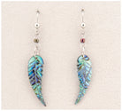 These Wild Pearle abalone earrings showcase the natural iridescence of premium abalone shell, expertly crafted into elegant feather-shaped dangles. Each pair captures the distinctive play of light across blues, greens, and purples characteristic of quality abalone, creating movement and visual interest with every wear. The feather design offers a refined silhouette that transitions seamlessly from casual to formal occasions. Lightweight and comfortable for extended wear, these earrings combine artisanal craftsmanship with the timeless appeal of natural shell materials.