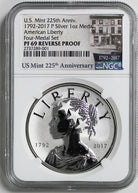 1792-2017 P Silver 1 OZ Medal American Liberty NGC PF 69 Reverse Proof
