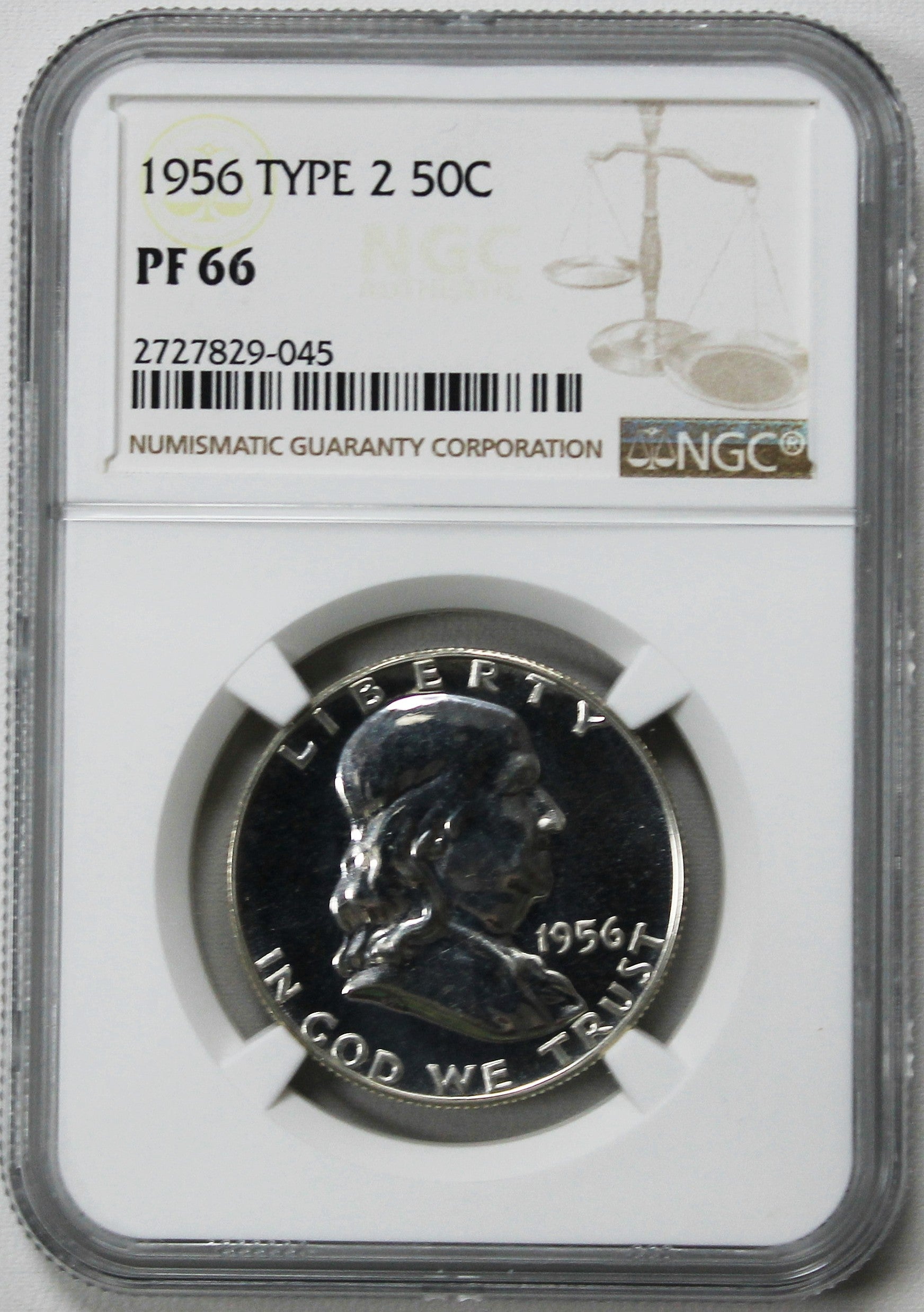 1956 Type 2 Franklin Half Dollar NGC PF 66