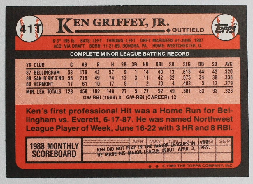 1989 Topps Traded #41T Ken Griffey Jr Rookie Card CC-032