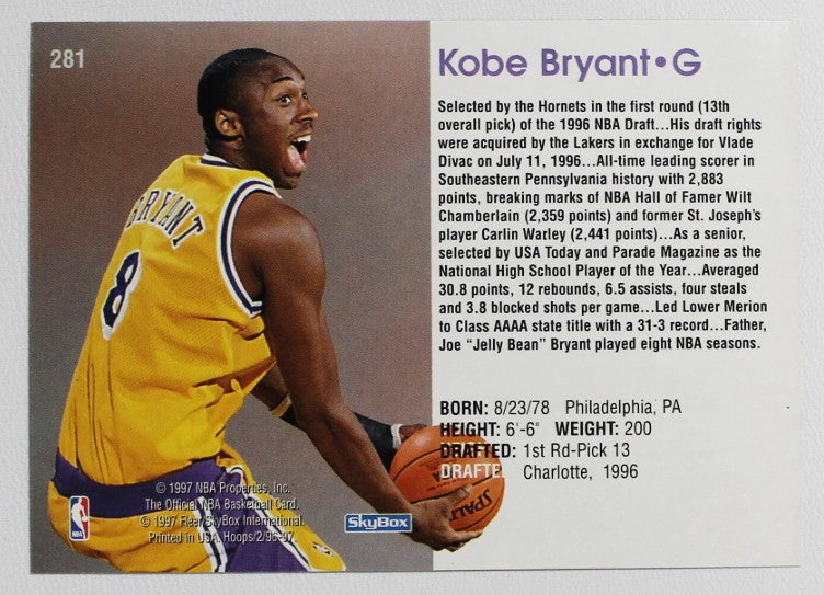 1996-97 NBA Hoops #281 Kobe Bryant Rookie CC-036