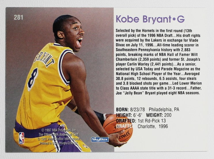 1996-97 NBA Hoops #281 Kobe Bryant Rookie CC-037