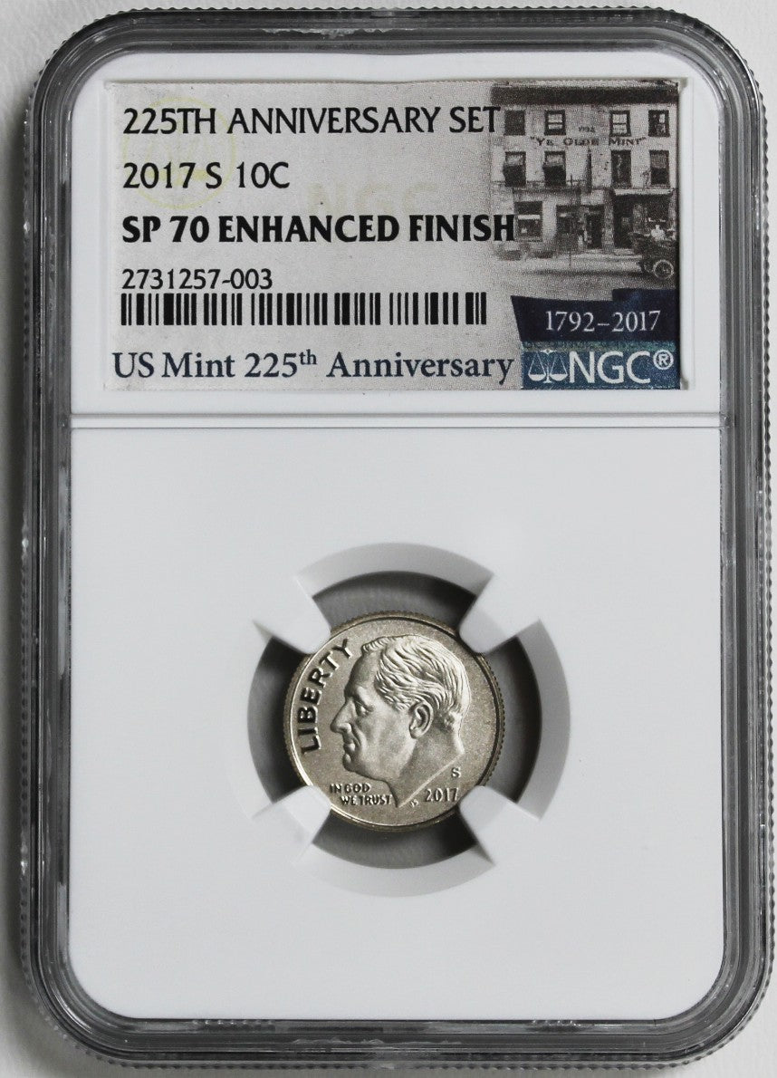 2017 S Roosevelt Dime 225th Anniversary - NGC SP 70 Enhanced Finish