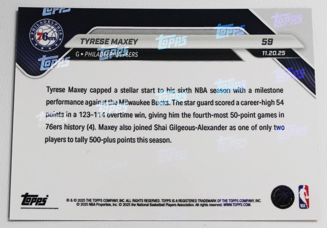 2025-26 Topps Now NBA Tyrese Maxey #59 Orange Foil # 08/25