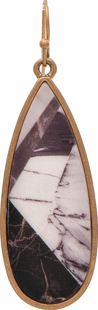Rain Gold White Tones Marble Teardrop Earring Pair