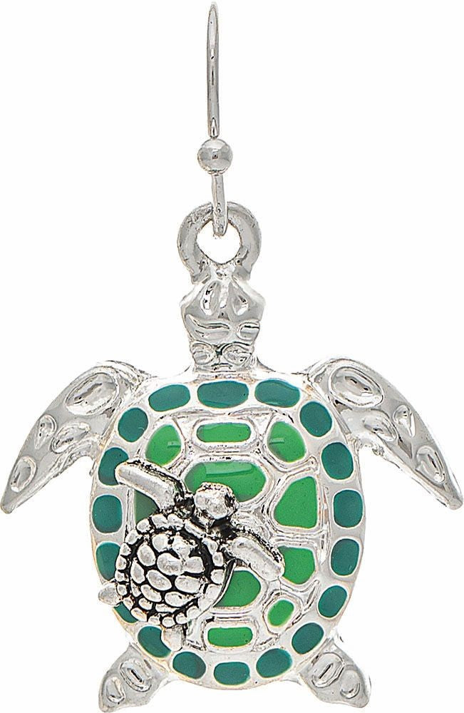 Rain Silver Green Mom Baby Turtle Earring Pair