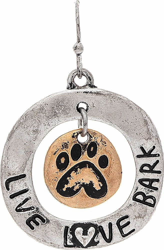 Rain Two Tone Live, Love, Bark Dog Charm Earring Pair