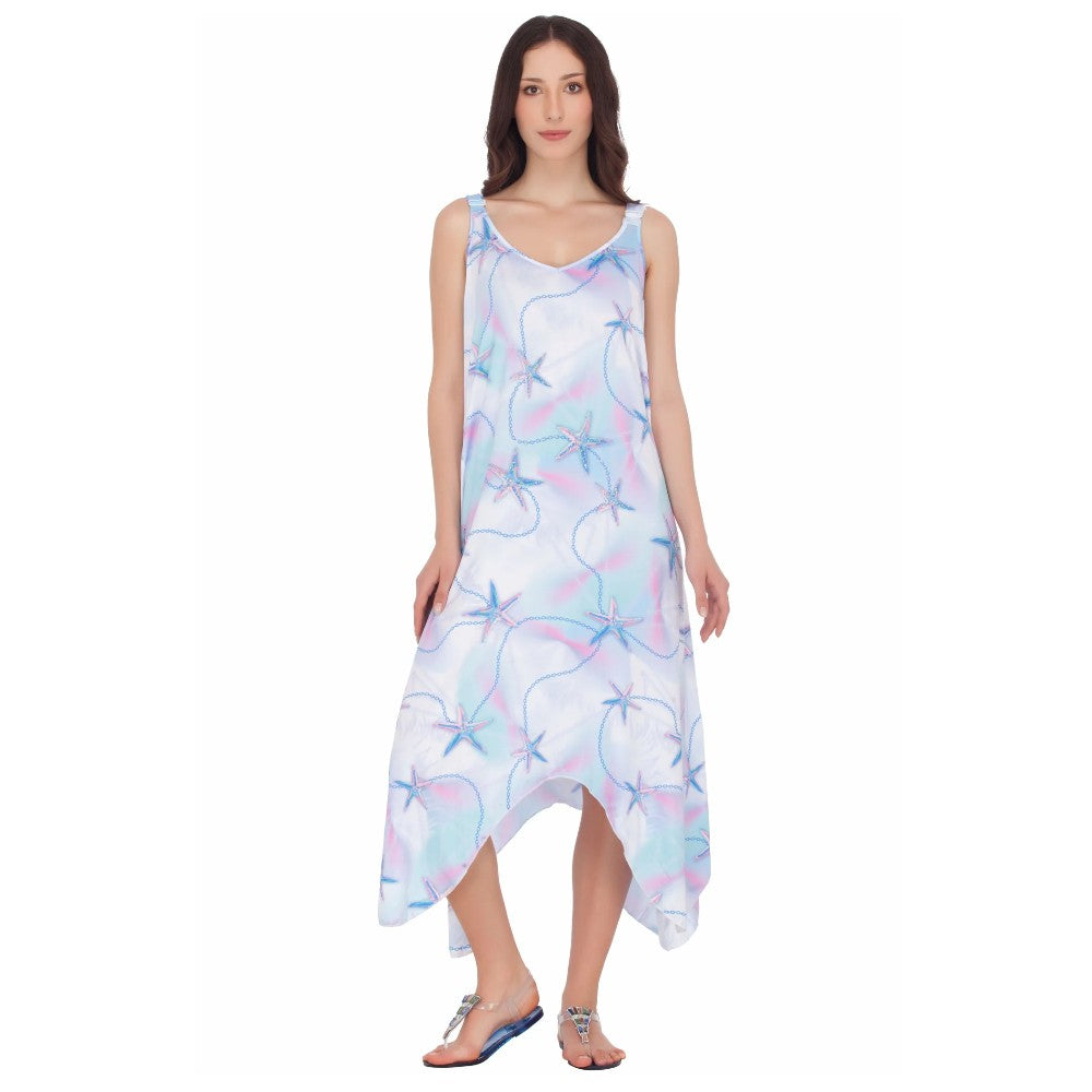Embrace beach vibes with our Starfish Handkerchief Knitted Maxi Dress. Perfect for sunny days, it combines comfort and style effortlessly.