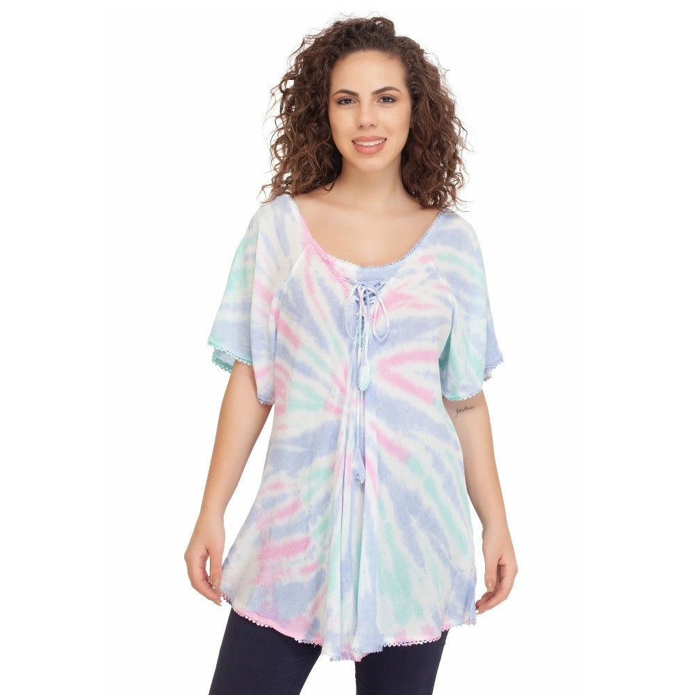 Add a pop of color to your wardrobe with our tie dye blouse with sleeves. Stylish and comfortable, perfect for any occasion.