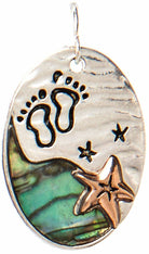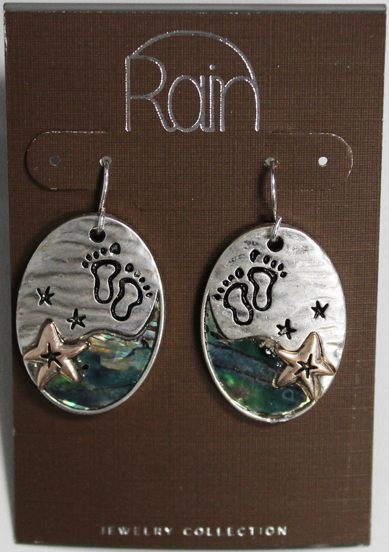 Rain Silver Footprints In the Sand Abalone Dangle Earrings