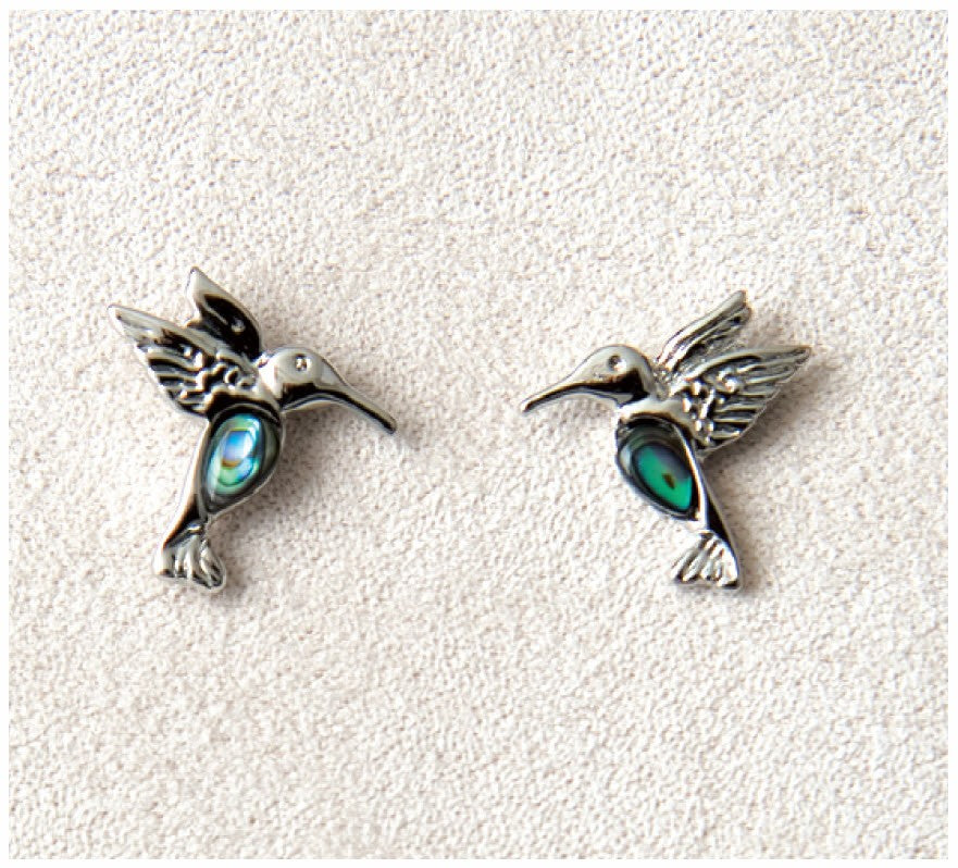 Wild Pearle Abalone Post Earrings Dainty Hummingbird