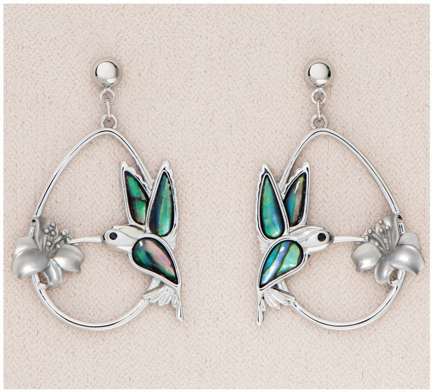Wild Pearle Abalone Earrings Fluttering Hummingbird