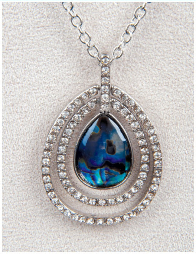This exquisite abalone necklace showcases the natural iridescence and organic beauty of premium abalone shell, expertly crafted into a statement piece. The lavish design features lustrous mother-of-pearl tones that shift between emerald, violet, and gold hues depending on the light. Each piece is uniquely patterned due to the natural variations in the shell, ensuring no two necklaces are identical. The sophisticated construction combines quality materials with refined artistry, making it an ideal choice for those who appreciate distinctive, nature-inspired jewelry. Perfect for elevating both casual and formal occasions with understated elegance.