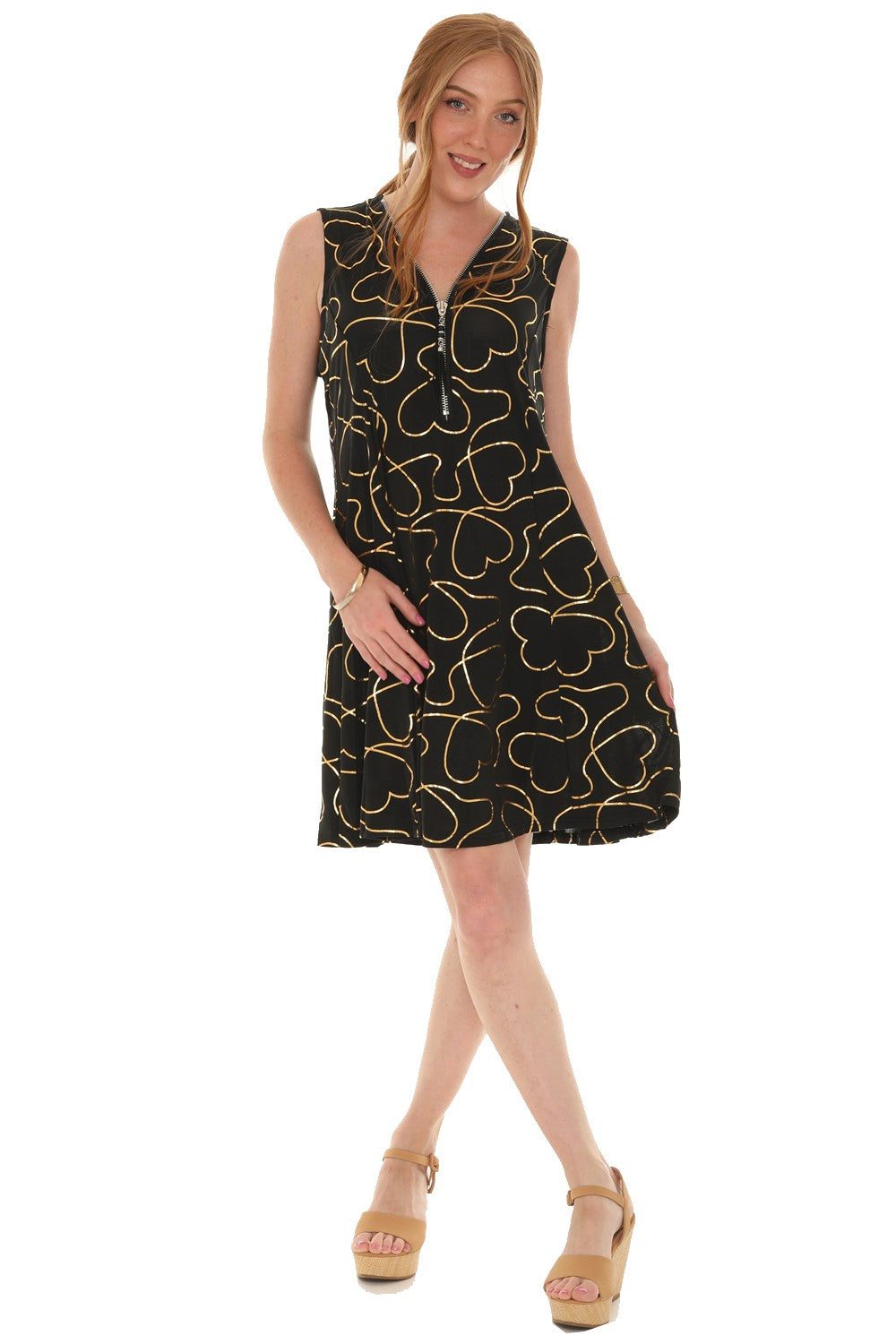 Abstract Waves Sleeveless A-Line zipper Dress