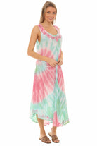 Tie-Dye With Embroidery Neckline Rayon Sundress