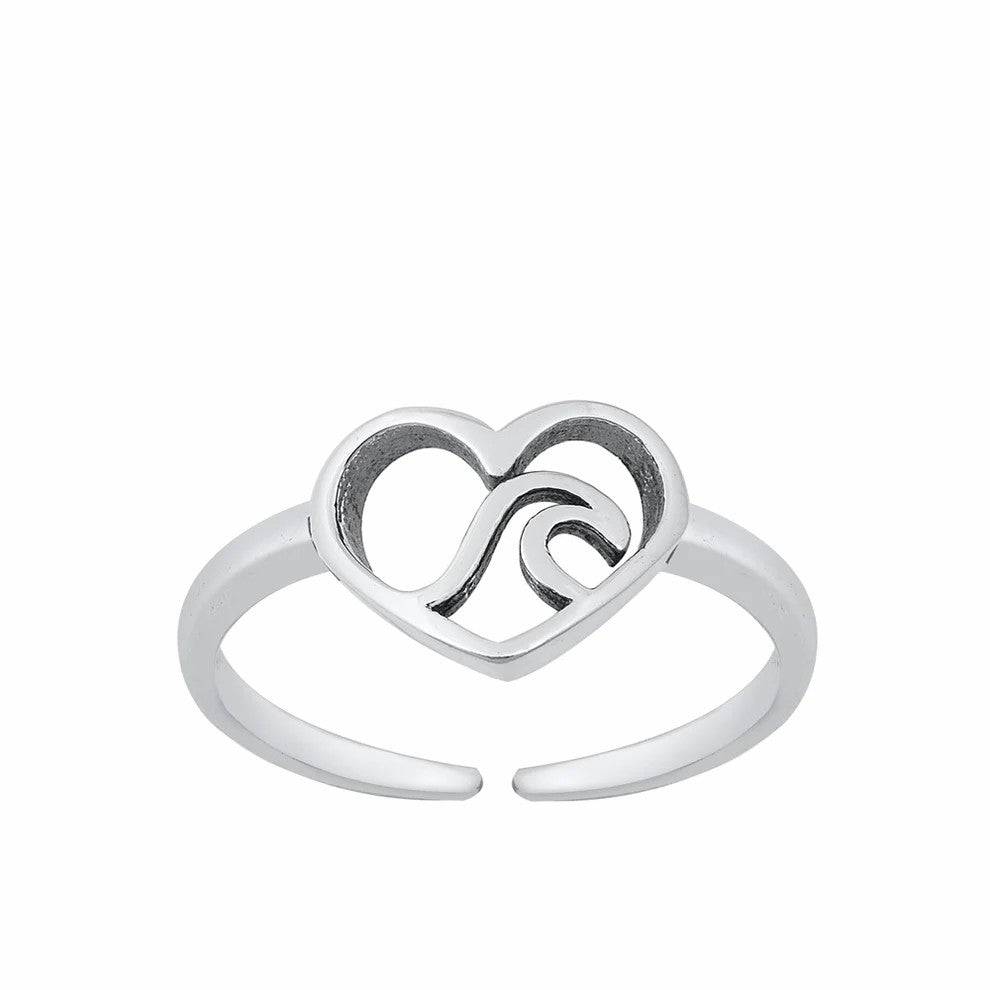 Heart & Wave Toe Ring .925 Sterling Silver