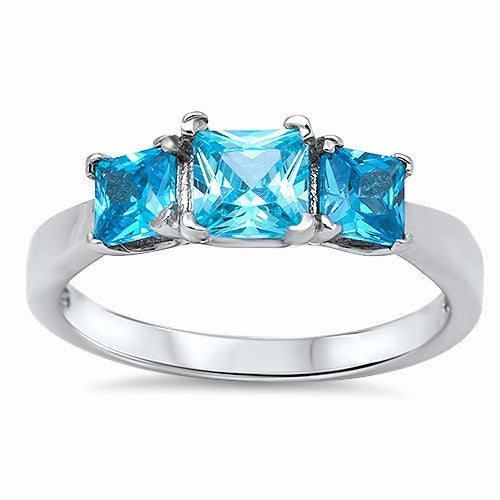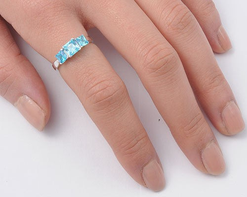 Women's .925 Sterling Silver 3 Square Blue Topaz CZ Ring
