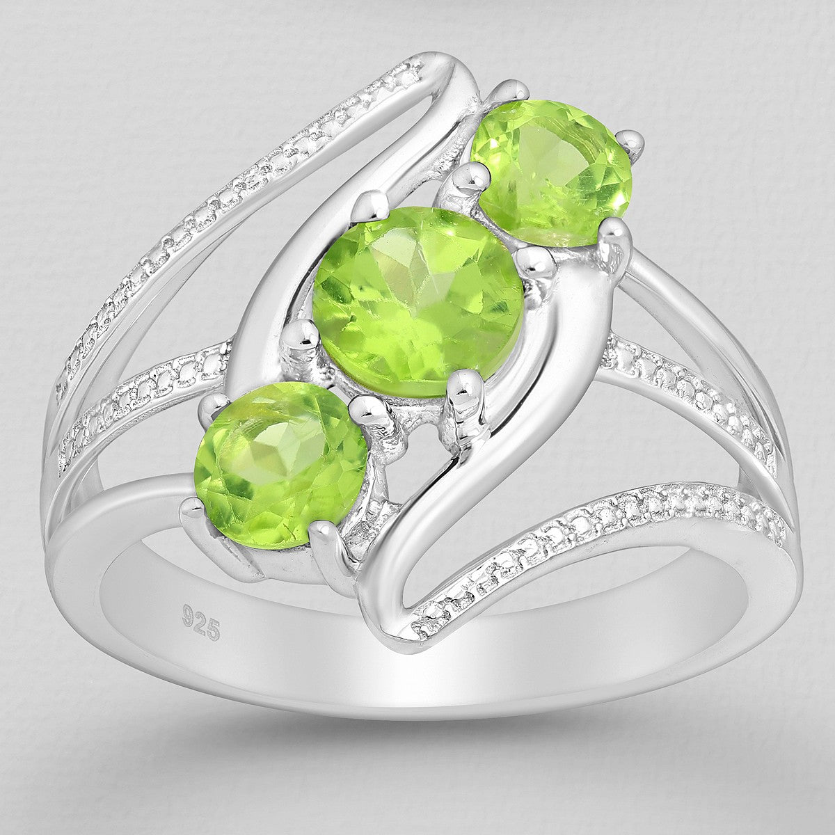 Women's .925 Sterling Silver 3 Stone Peridot Ring