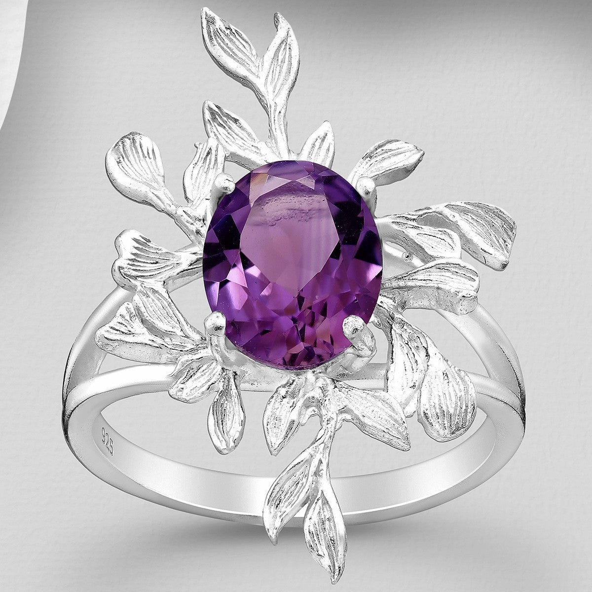 Women's .925 Sterling Silver Amethyst Leaf Ring