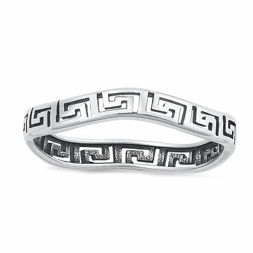 Women's .925 Sterling Silver Aztec Greek Key Ring