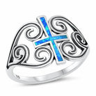 Women's .925 Sterling Silver Cross With Blue Lab Opal Ring