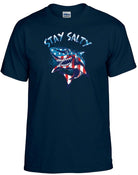 Stay Salty Patriotic Shark Navy Blue Tee Shirt