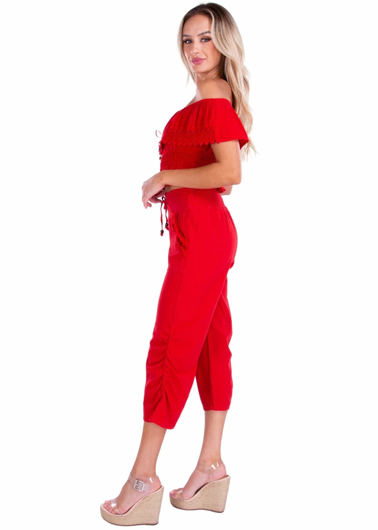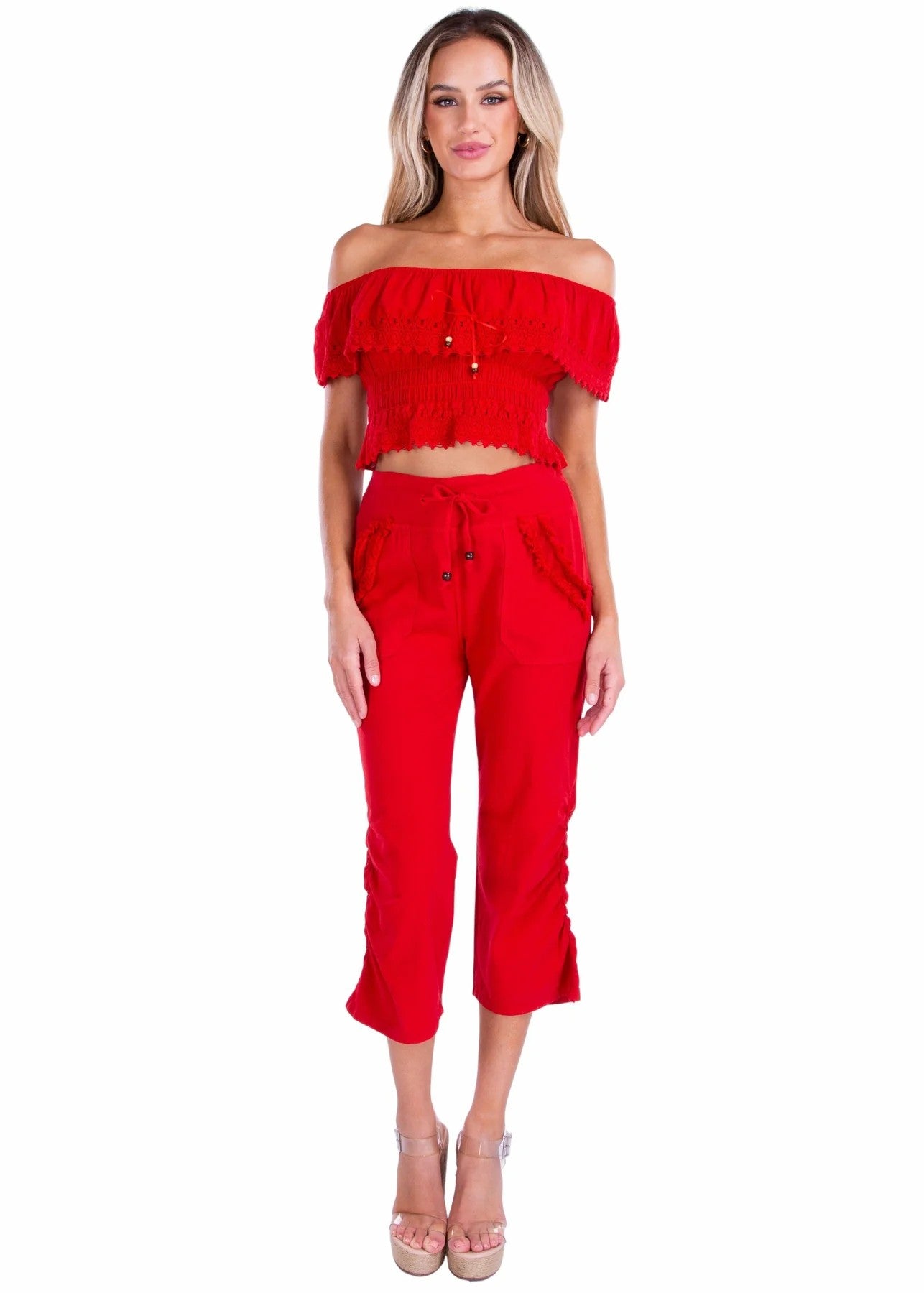 Seaspice Red Cotton Capri Pants