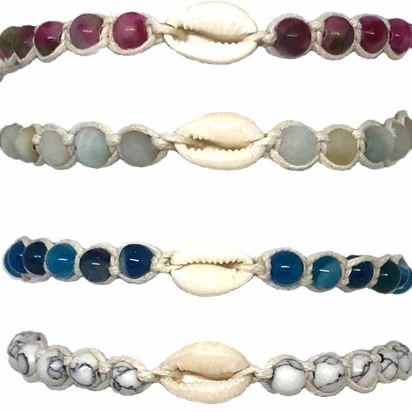 Assorted beads with cowrie on adjustable string bracelet