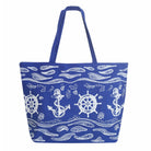 Carry your essentials in style with our beach bag featuring a nautical wheel and anchors design.