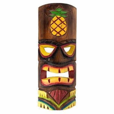 CARVED TIKI MASK WITH PINEAPPLE DESIGN