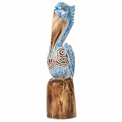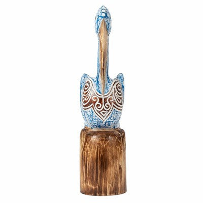 CARVED WOODEN PELICAN FIGURINE Blue