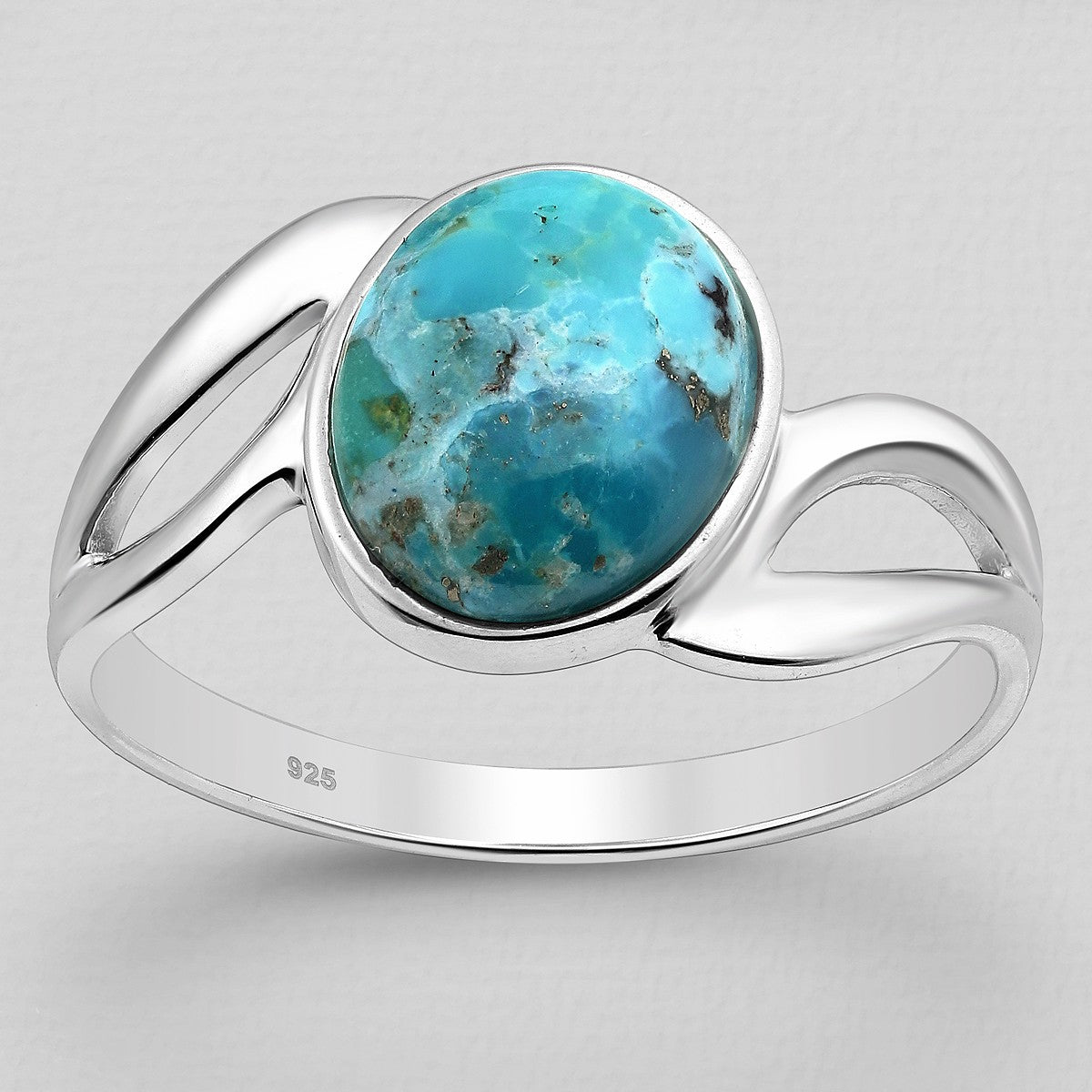 FAH 925 Sterling Silver Reconstructed Sky Blue Turquoise Ring