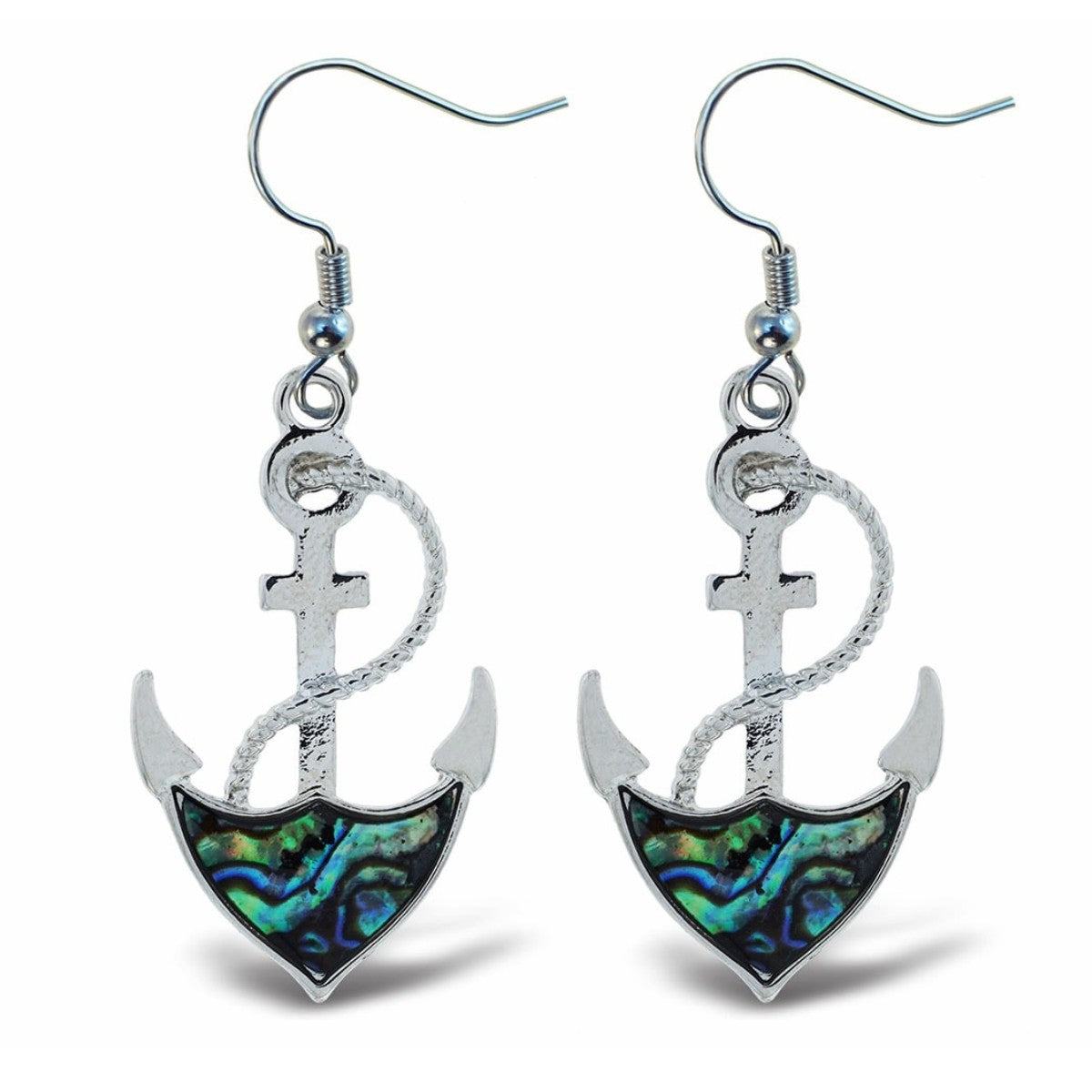 Fish Hook Anchor Earrings– Paua Shell Aqua Jewelry