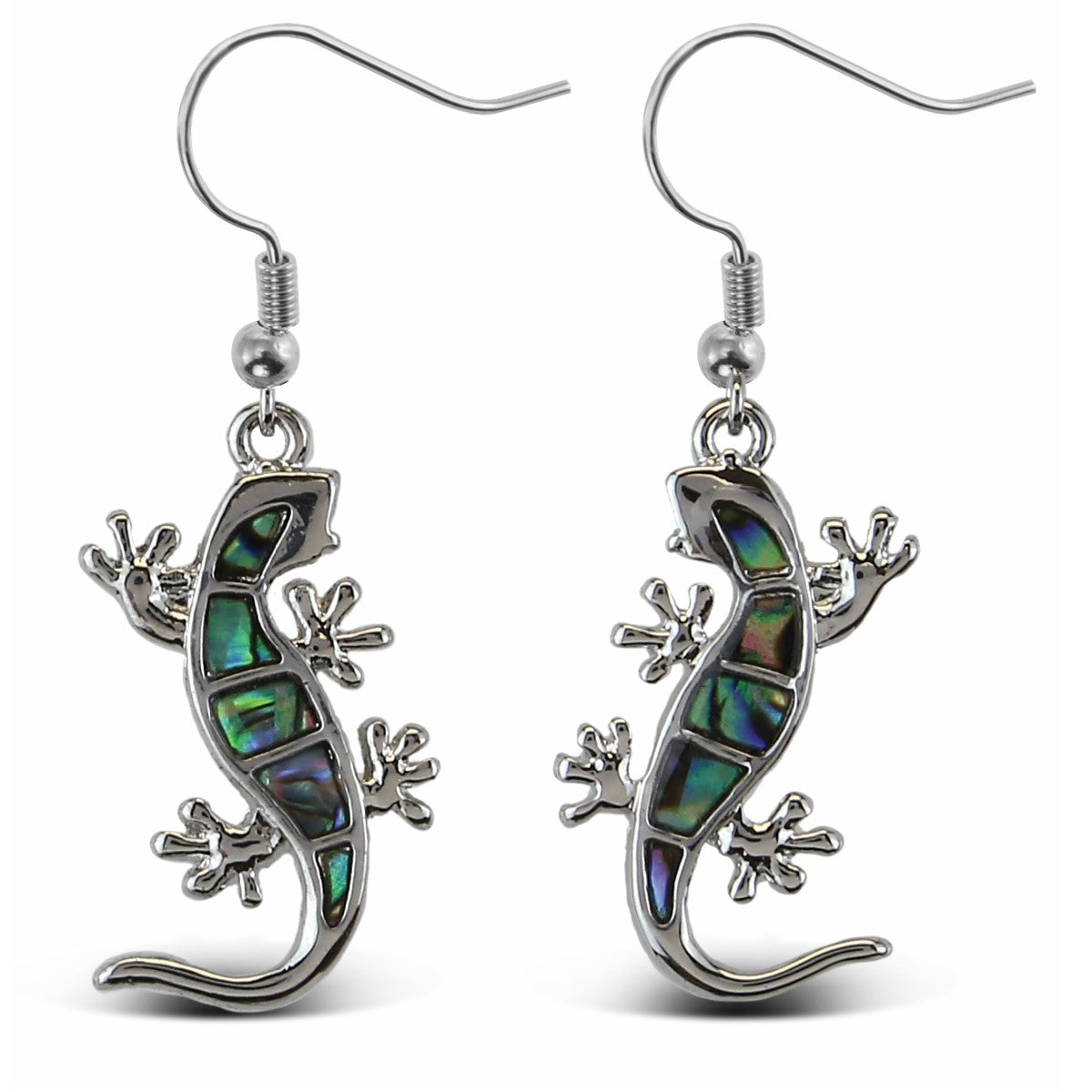 Fish Hook Gecko Earrings– Paua Shell Aqua Jewelry