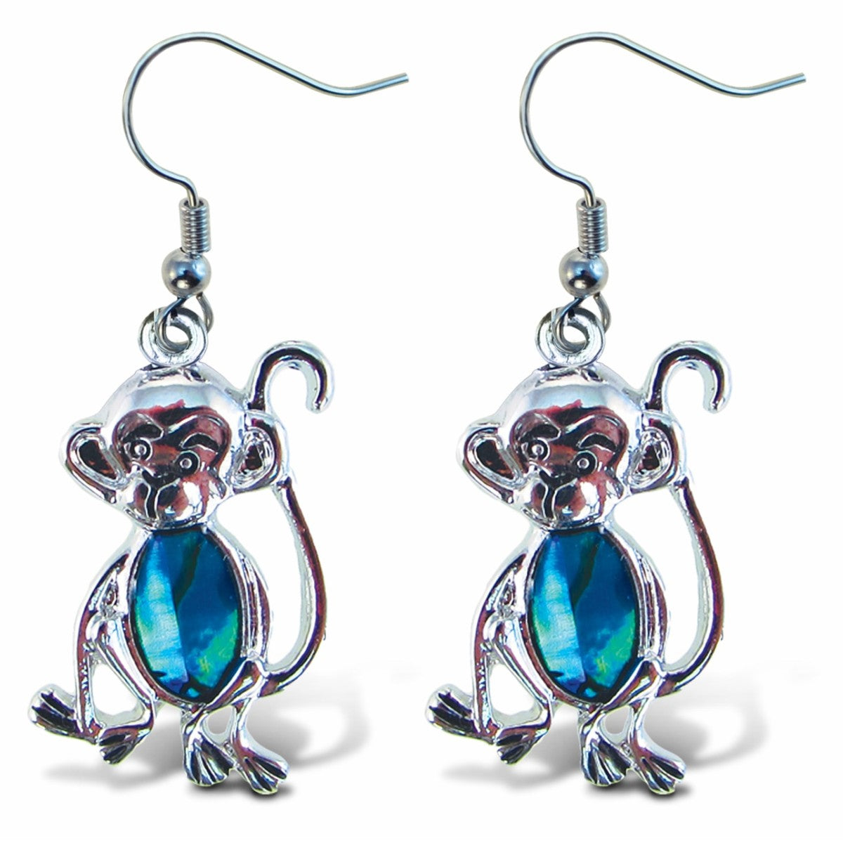 Fish Hook Monkey Earrings– Paua Shell Aqua Jewelry