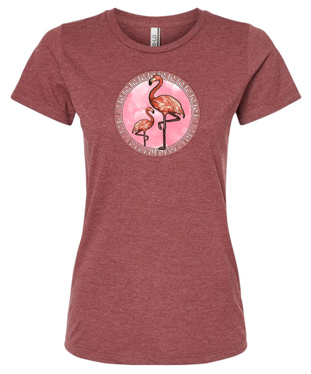 Women's Flamingo Greek Key Premium Cotton Blend Burgundy Heather Top