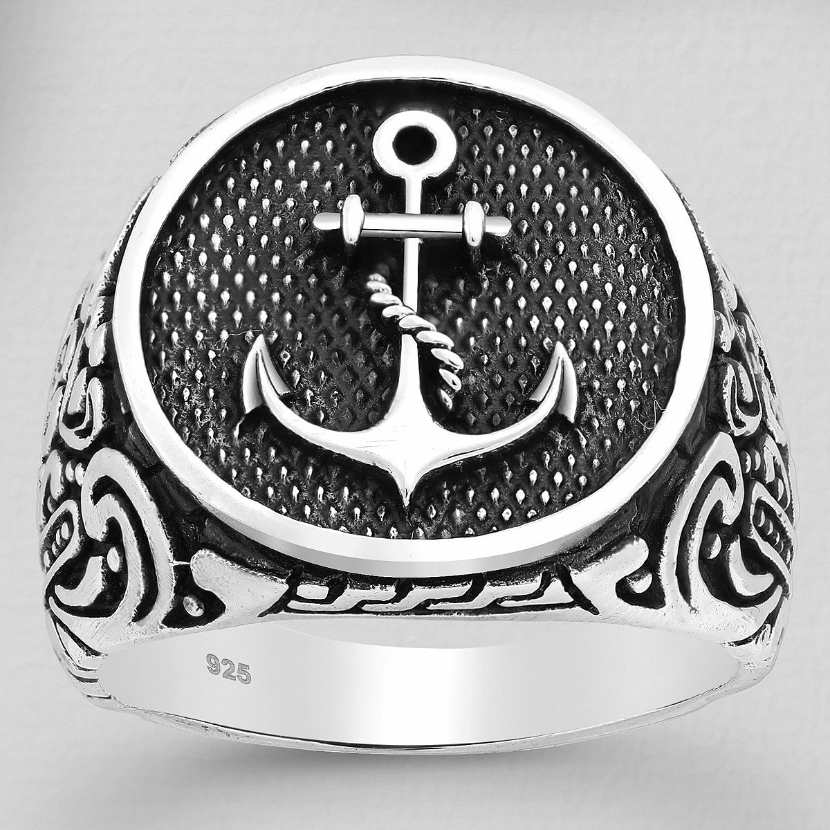 Men's 925 Sterling Silver Anchor and Swirl Ring