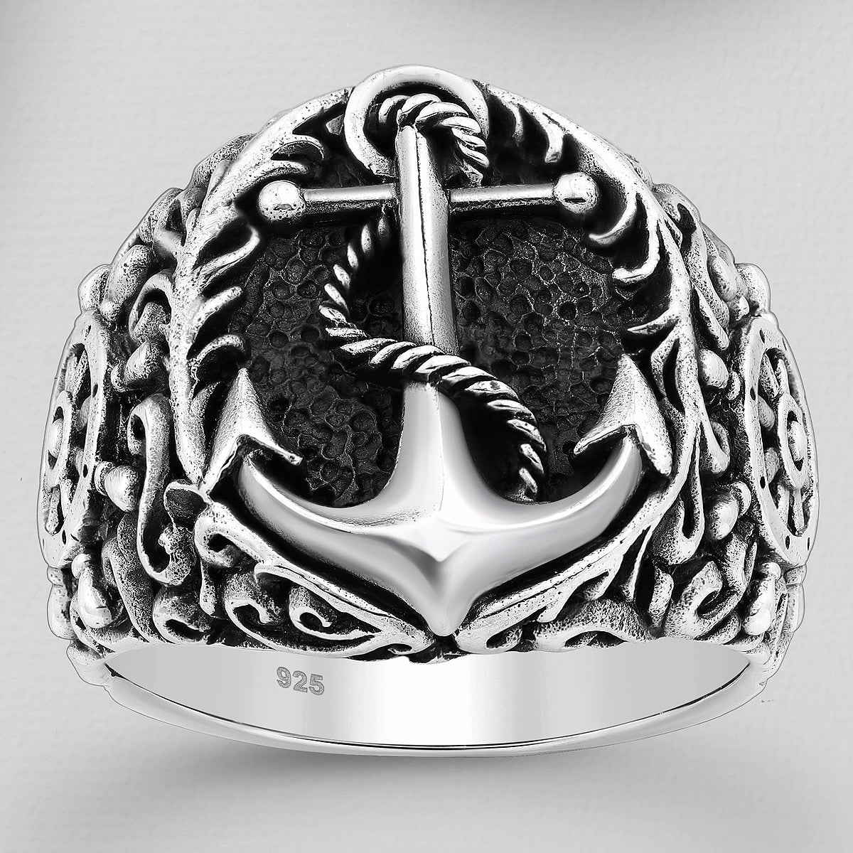 Men's 925 Sterling Silver Swirl Anchor And Ship Wheel Ring