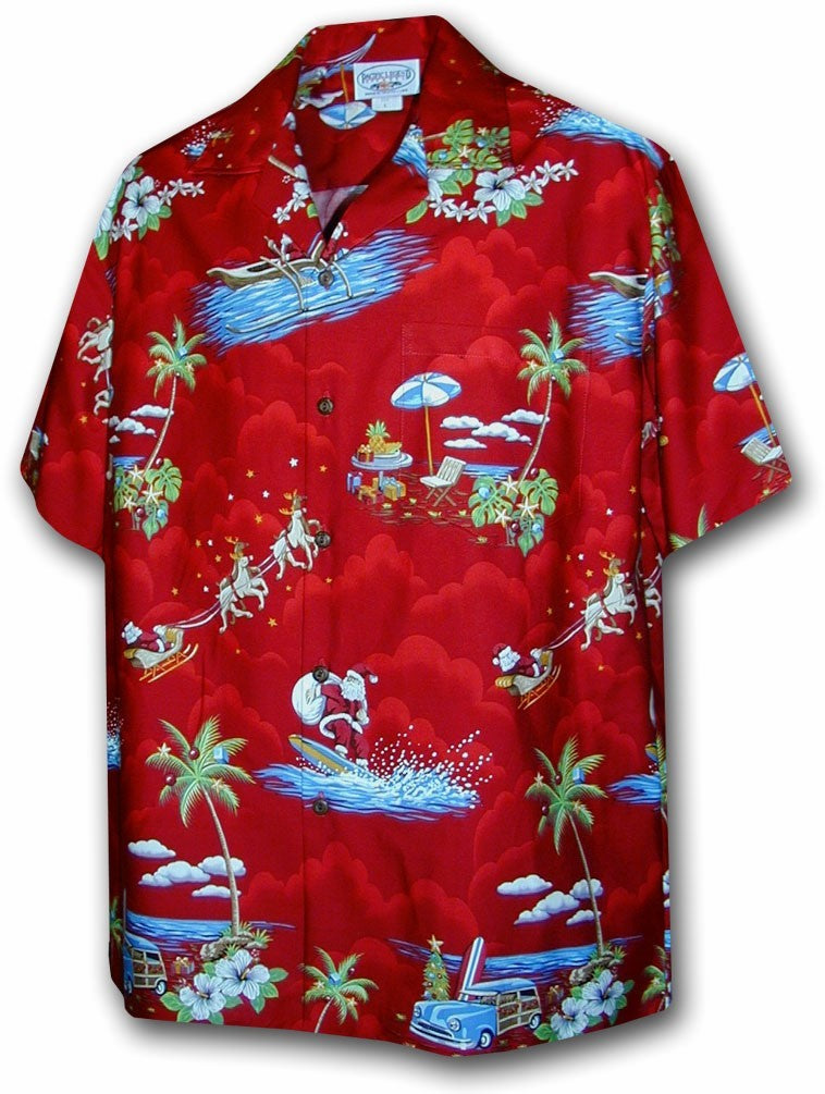 Men's Hawaiian Button Shirt Surfing Santa Clause