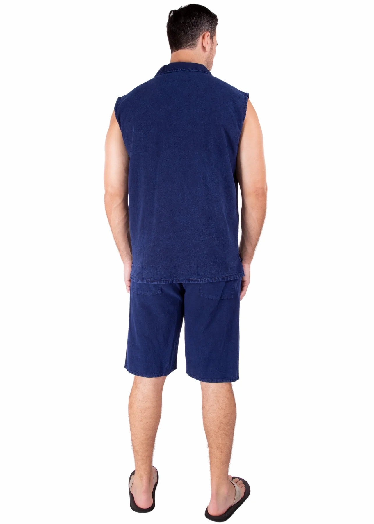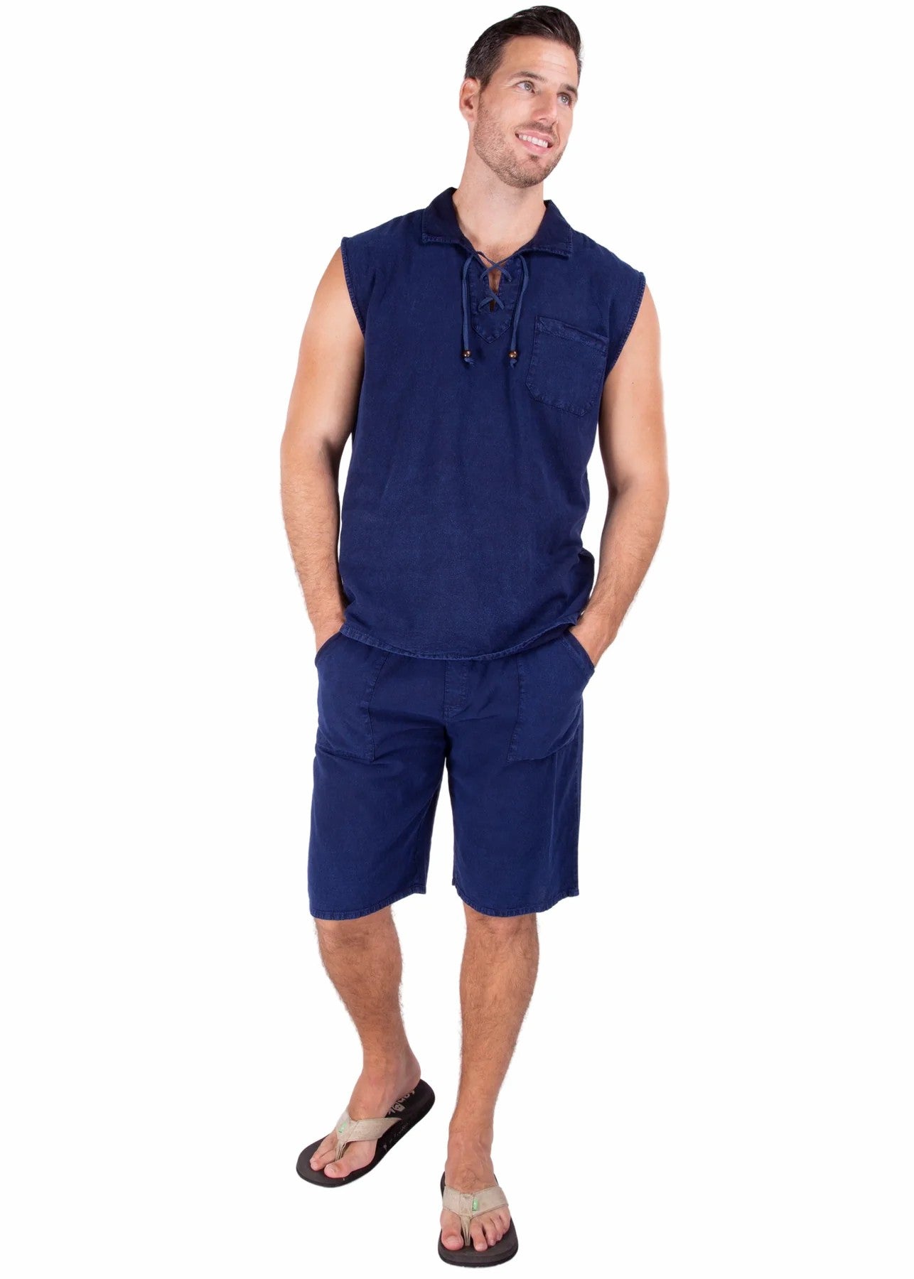 Men's Navy Cotton Drawstring Pocket Sleeveless Shirt