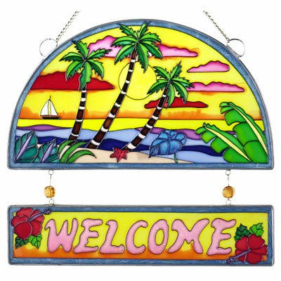 PALM SUNSET WELCOME 10" GLASS SUNCATCHER