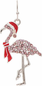 Rain Silver Pink Crystal Christmas Flamingo Earring