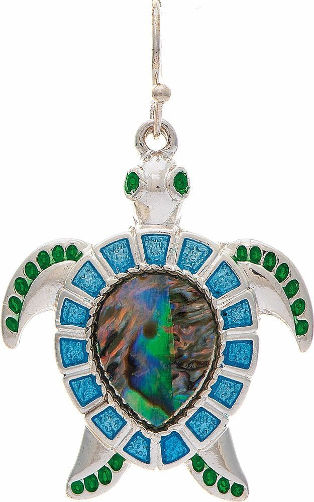 Silver Blue Green Abalone Inlay Sea Turtle Earring Pair