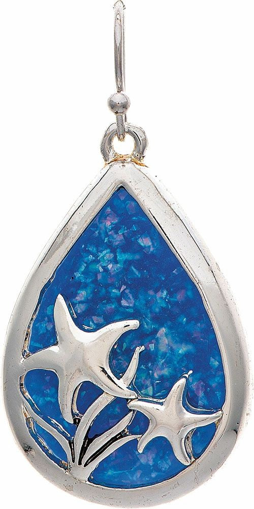 Rain Silver Blue Sea Opal Starfish Earring Pair