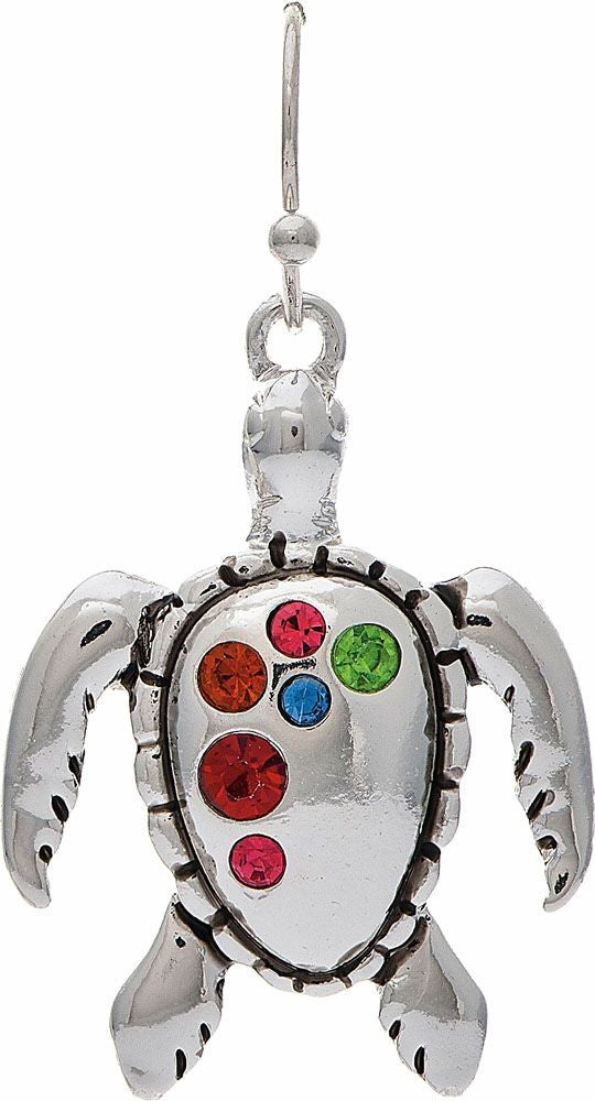 Rain Silver Multicolor Crystal Inlay Turtle Earring Pair