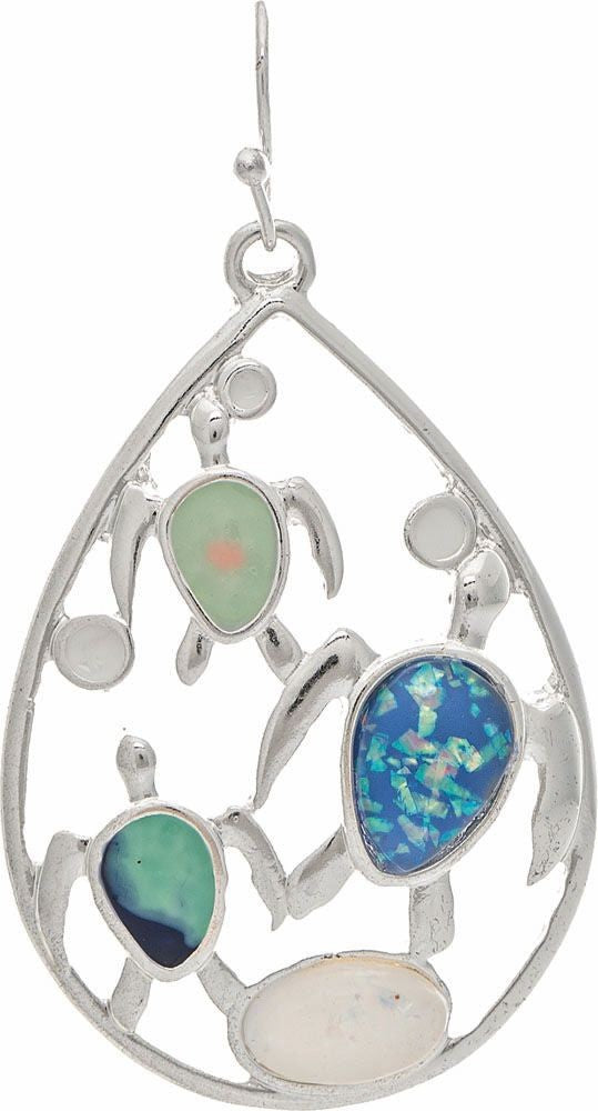 Silver Opal Resin Inlay Turtle Reef Earring Pair
