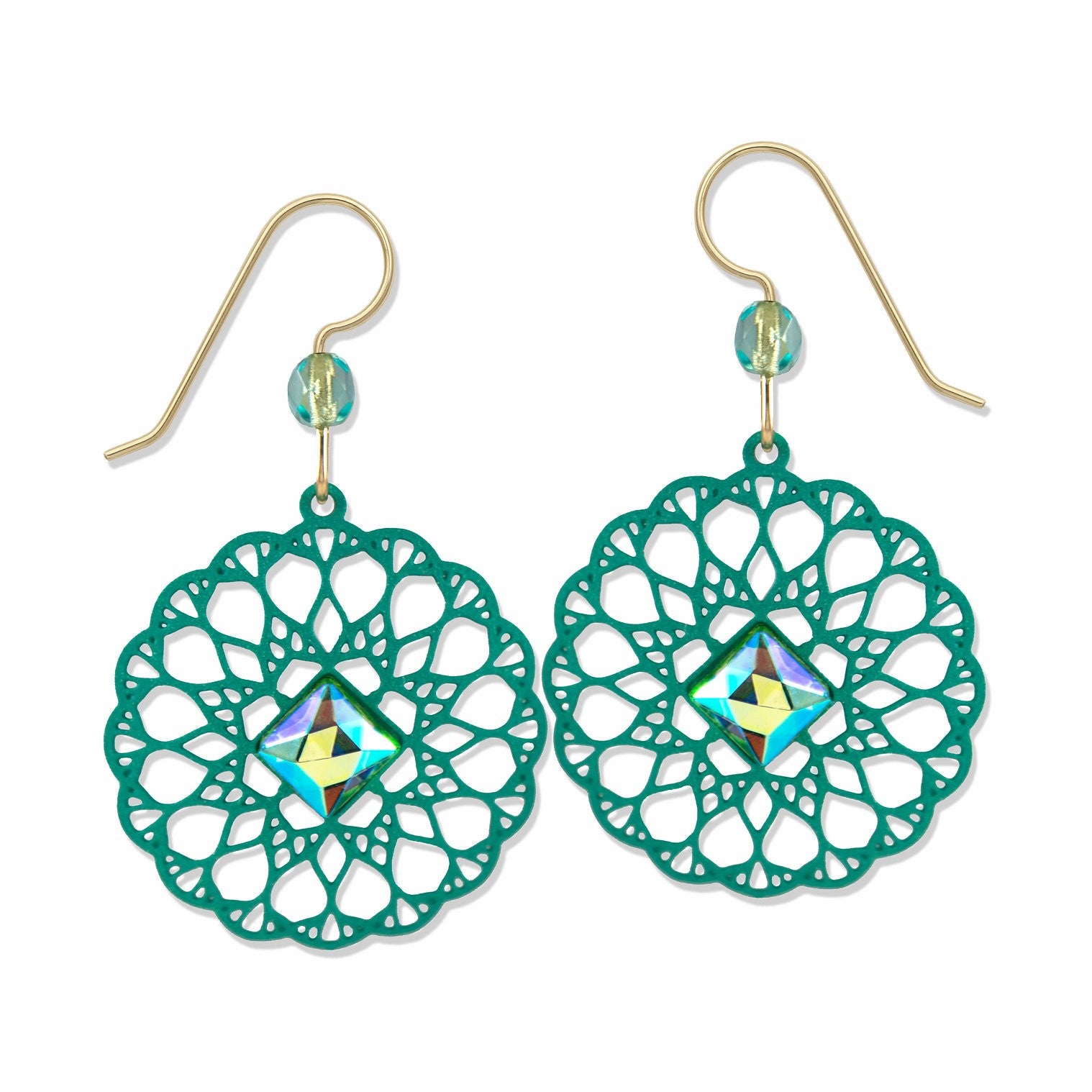 Teal Filigree Disc Earrings