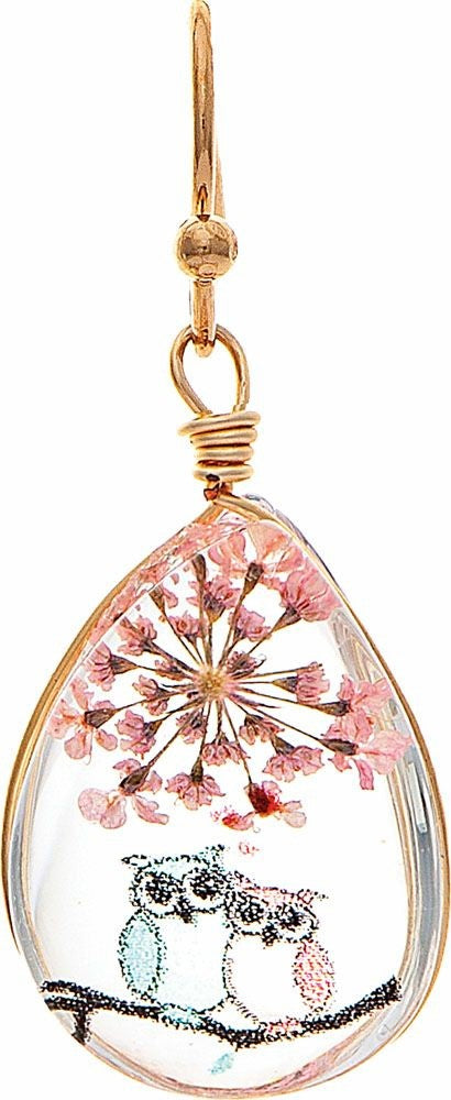 Tiny Owls Acrylic Teardrop Earring Pair