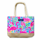 Watercolor Flamingos Jute Tote Bag With Rope Handle