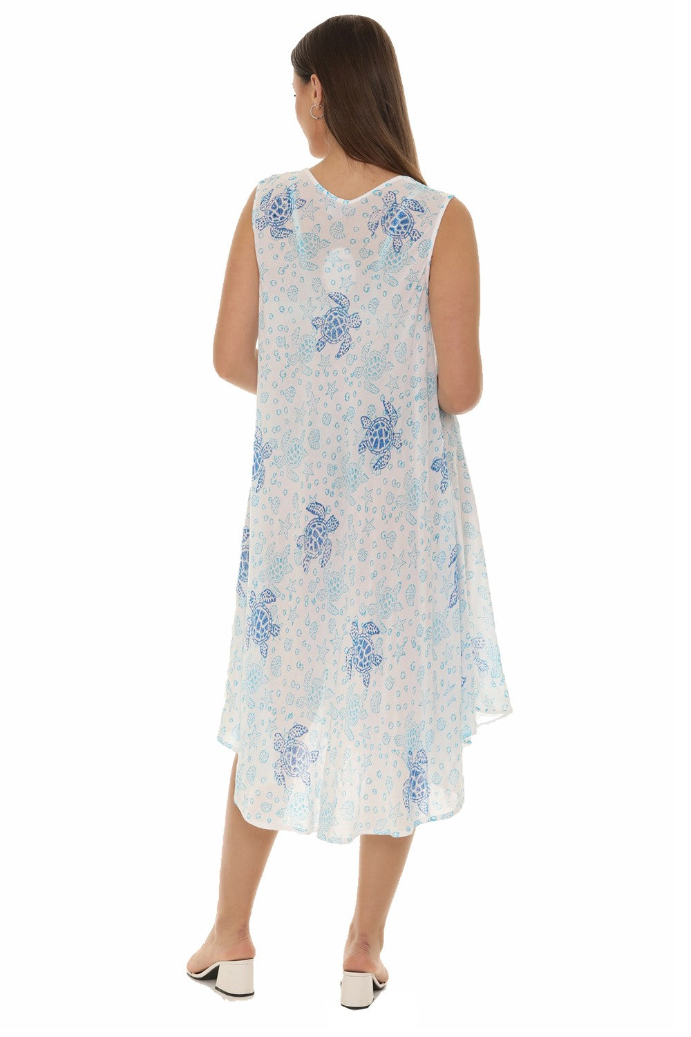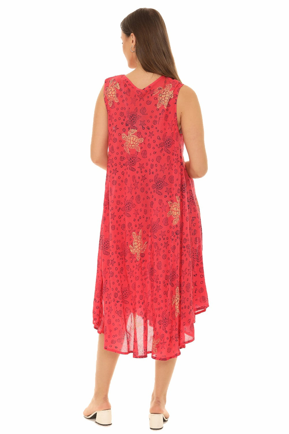 Tropical Sea Turtle Print Midi Rayon Sundress
